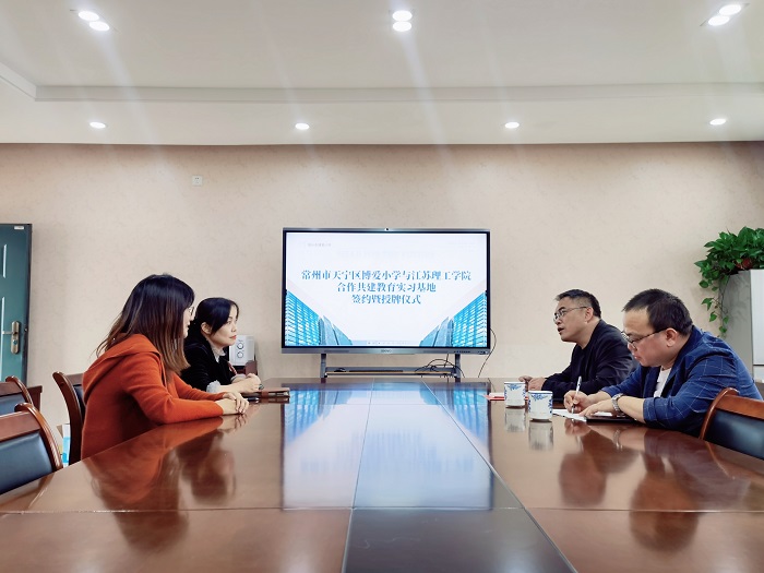 10月26日上午,外国语学院与常州市博爱小学在博爱小学行政会议室举行合作共建英语(师范)专业教育实习基地签约暨授牌仪式。博爱小学校长柴曙瑛、副校长高洁,教师发展中心副主任杭燕楠,外国语学院副院长王毅、英语系主任杨国萍等参加仪式。