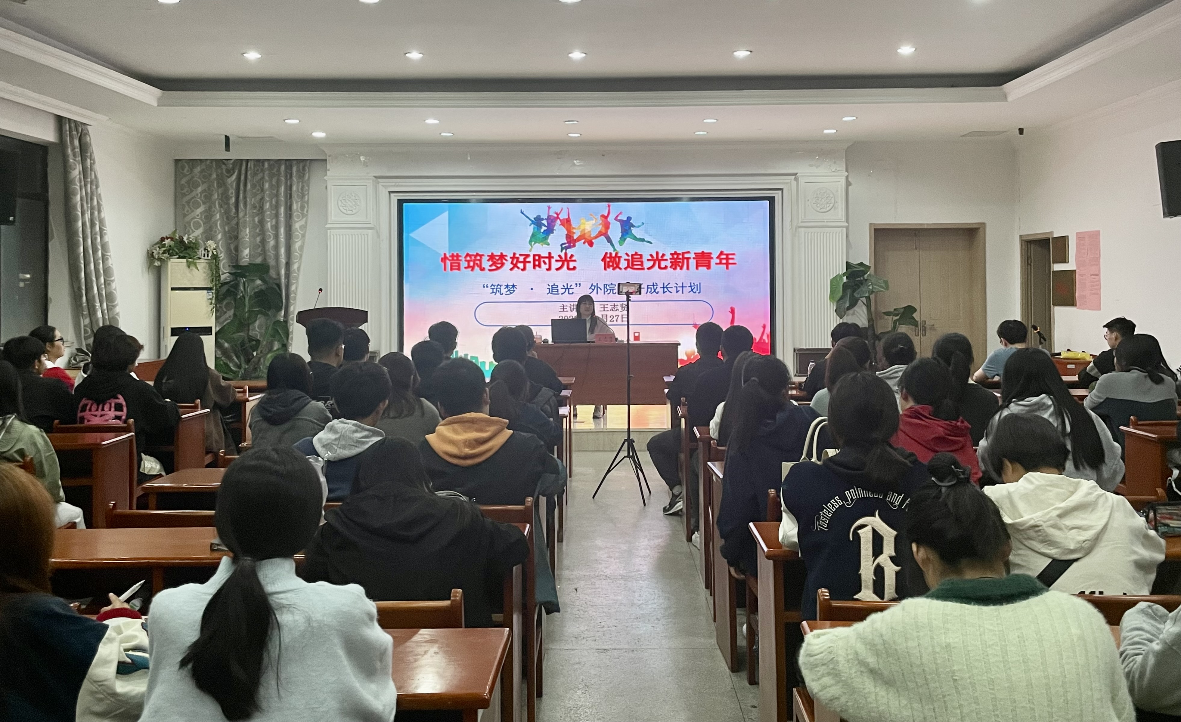 王志贤为同学们上了一堂题为“惜筑梦好时光 做追光新青年”的党课,她介绍了我院多年来的育人成效,通过一个个鲜活的优秀校友案例给大家指明努力前行的方向,并寄语新生以梦为马、不负韶华,做好筑梦人、追光者。
