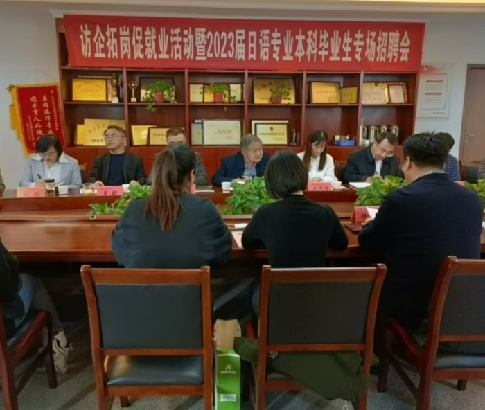 为深入贯彻落实教育部、省教育厅关于开展高校书记校长访企拓岗促就业专项行动的通知精神,进一步拓宽就业渠道,促进毕业生高质量就业,11月9日下午,我院在50号楼210会议室举行访企拓岗促就业活动暨2023届日语专业本科毕业生专场招聘会,副校长谢忠秋、我院党政领导、日语系部主任、毕业班班主任、就业指导员及在常三家用人单位负责人参加了本次活动。会议由院学工办主任刘宇宁主持。