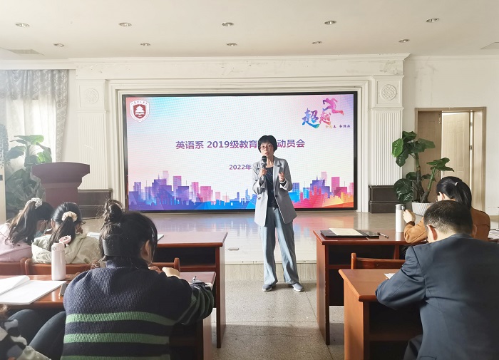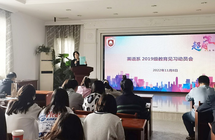 11月8日下午,外国语学院英语系在50-503报告厅召开2019级英语师范生教育见习动员会。副院长王毅、英语系主任杨国萍、见习带队教师与2019级全体学生参会。会议由杨国萍主持。