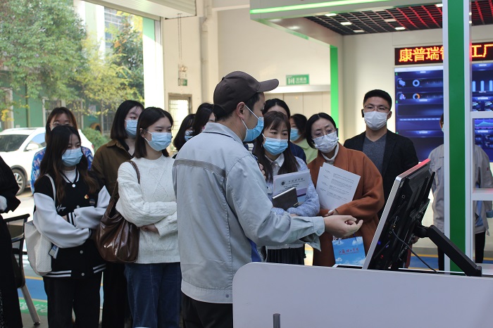 康普瑞汽车空调有限公司董事长马炳新代表企业致欢迎词。人事专员王丽萍简要介绍了公司的基本情况,并对学生代表提出的就业岗位及实操环境等问题给予详细解答。随后,企业相关负责人带领大家对企业的研发中心、生产工艺等进行了实地参观。参观结束后,同学们纷纷表示在就业选择过程中“百闻不如一见,应该有更多亲历,才能有更佳选择”。