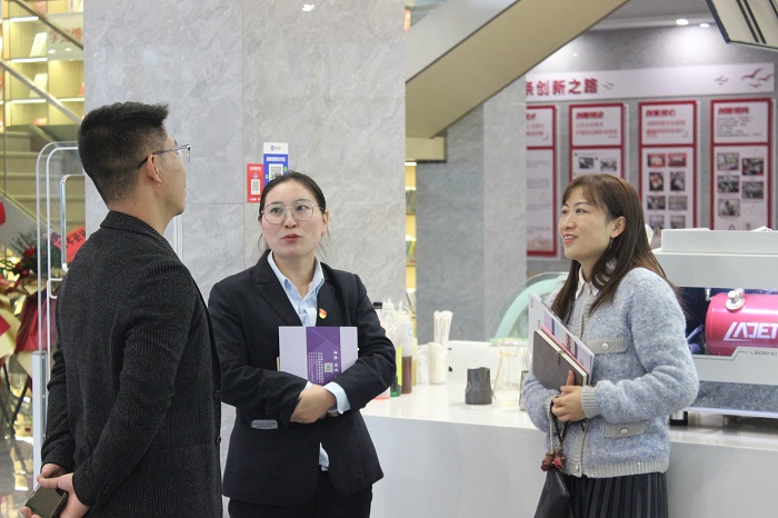 拔云汇智慧产业园中三家企业代表分别介绍了公司基本情况及用人需求,其中伊之森新风科技董事长张雪娟现场对学生进行了一场现场英文口语面试。2019级毕业生王倩雯同学的优秀表现令企业董事赞不绝口。双方充分了解之后,毕业生与各企业负责人分别在洽谈室进行更进一步地沟通。