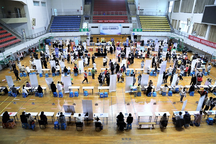 为深入实施就业优先战略,充分发挥校园招聘主渠道作用,高质量推进毕业生就业工作,1130日外国语学院与管理学院在校体育馆联合举办“青春留常、职得你来”2023届秋季双选会。安川电机、麦格纳动力、新东方教育等90余家国内外优质企业相关负责人到场,带来超800个就业岗位。