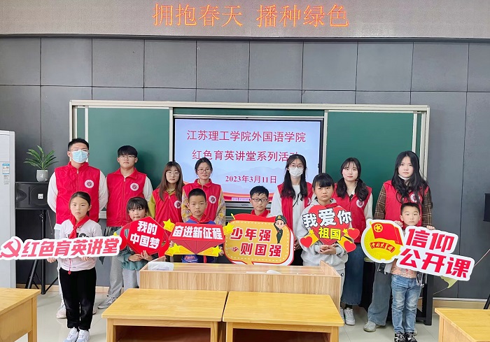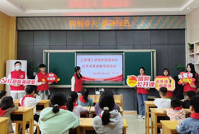 近日,江苏理工学院外国语学院红色育英讲堂开讲啦!他们将红色地方文化元素融入社区志愿服务、小学课后服务等,以内涵丰富的红色育英讲堂创新了青年大学生思想引领形式。