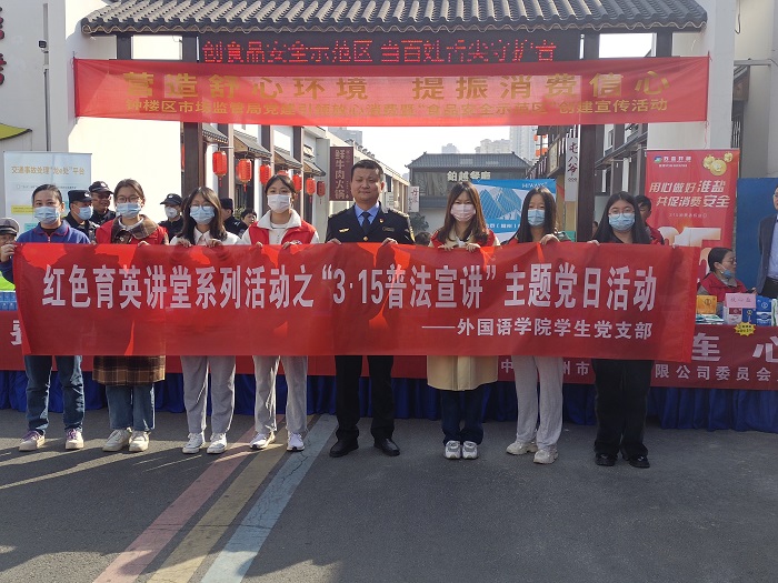 为有效提高市民知法、懂法、用法的能力,增强反诈意识,我院学生党支部组织党员和入党积极分子于3月15日上午在钟楼区永红街道广福街以及江苏理工学院校内开展了红色育英讲堂系列活动之“3.15普法宣讲”主题党日活动。