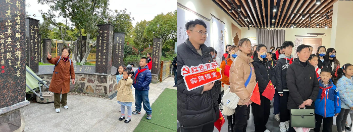 红色育英流动巴士的第一站来到了董亦湘纪念馆。大家手捧鲜花面向董亦湘烈士纪念碑,依次上前敬献鲜花并行默哀礼,表达对英雄先烈的无限哀思与敬仰。党员们在纪念碑前重温了入党誓词,他们面向党旗庄严宣誓,向党和人民做出承诺,立志传承先烈遗志,弘扬革命精神。