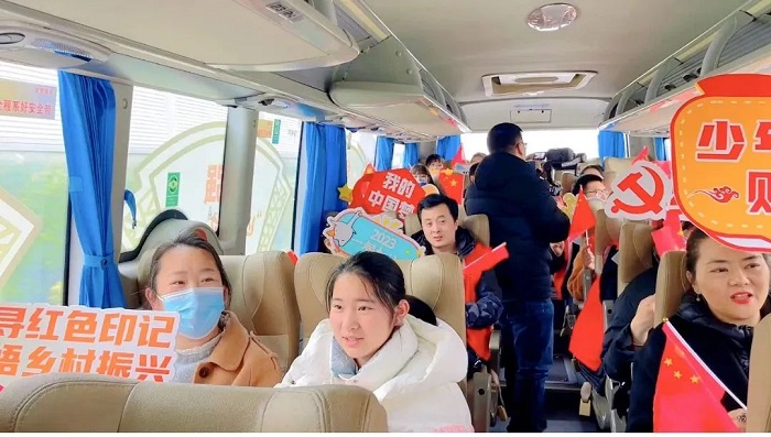 “我们是共产主义接班人,继承革命先辈的光荣传统……”近日,在江苏理工学院开往董亦湘纪念碑、雪堰镇回民村的红色育英流动巴士上,激昂的歌声昭示着青春的朝气。江苏理工学院外国语学院团委、学生党支部、教工行政党支部、武进区牛塘镇青云村关工委、常州市关工委青少年思想道德教育宣讲团共同联合组织“红色育英实践讲堂之寻找奋斗的丰碑”主题党团日活动。