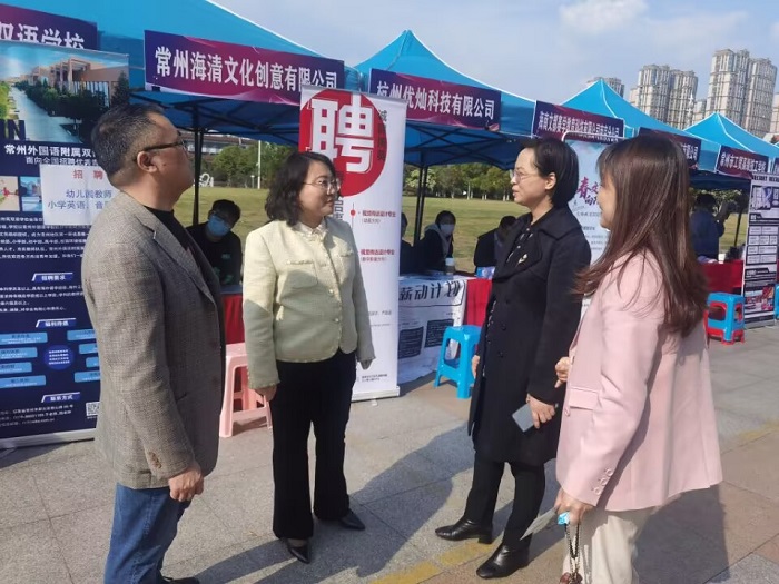 为深入贯彻党的二十大关于就业工作安排,落实好就业优先政策,不断推进高校毕业生就业工作方针,搭建完善2023届毕业生就业应聘和用人单位之间的就业平台,提供更高质量的就业实习机会,让毕业生更好地面向社会、服务社会。外国语学院、艺术设计学院和教育学院于4月7日下午在图书馆广场联合举办专场招聘会,校党委常委、副校长蒋心亚、俞亚萍,三院领导班子、辅导员及全体2023届毕业生参加活动。