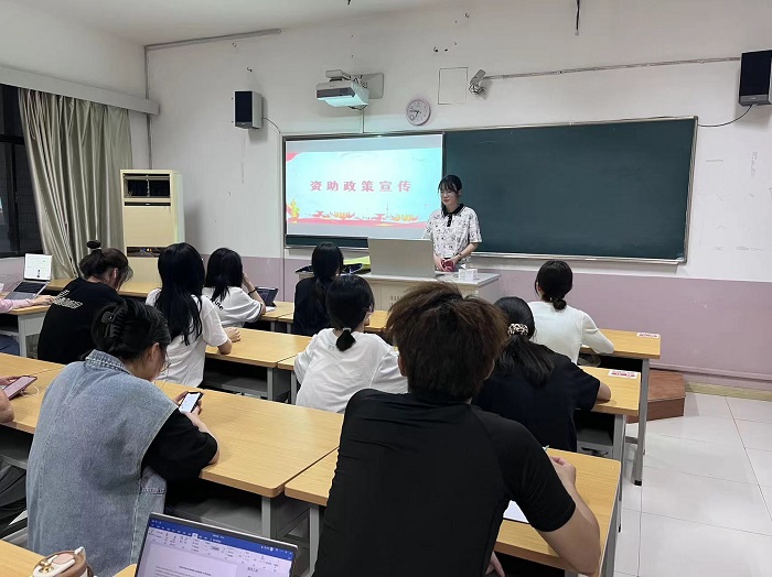 为全面落实党的二十大提出的“完善覆盖全学段学生资助体系”要求,全面贯彻党的教育方针,紧紧围绕立德树人根本任务,广泛宣传资助政策,我院于5月29日晚在外语楼107开展资助政策宣传活动,辅导员黄玉婷、22级学生代表参加了本次活动。