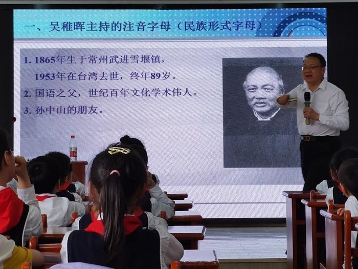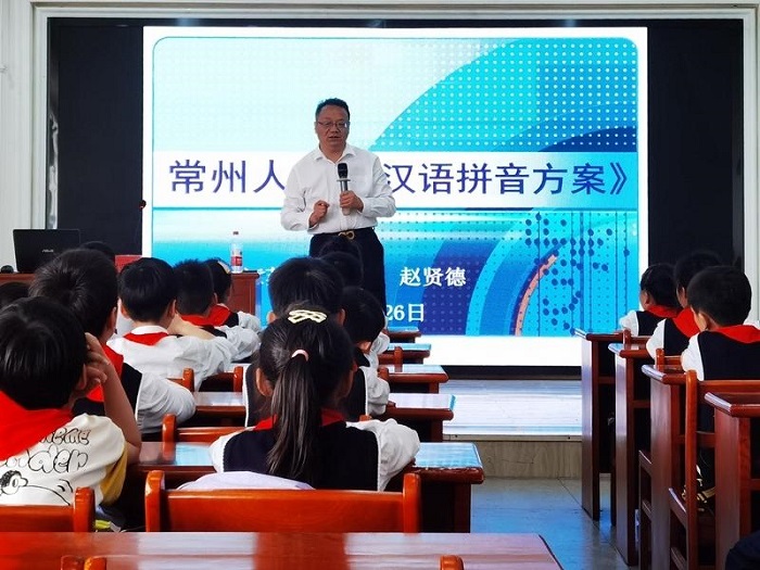 常州是“汉语拼音之父”周有光的故乡,常州市语言学会副会长赵贤德教授为队员们带来《常州人与汉语拼音》的讲座,帮助队员加深对常州人文地理的了解,感受汉语拼音的魅力,激发队员的家国情怀。