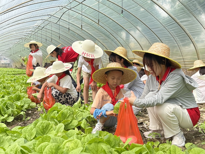 夏日炎炎、烈阳高照,在武进区牛塘镇青云村的村道上出现了这样一群“全副武装”的小学生,他们头戴草帽,唱着红歌,去农民伯伯的蔬菜大棚里,开展“传承井冈山精神,践行艰苦奋斗作风”主题活动,体验“快乐小农夫”的一天。