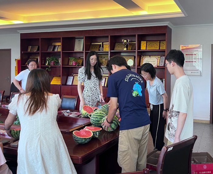 随后,老师们为同学们分发了精心准备的文具套装和西瓜等考研慰问品,送清凉到学生手中,传关怀于学生心坎。同学们纷纷表示,将积极配合学校暑期安全工作,以更加饱满的热情投入考研复习之中,争取以优异的成绩交出一份满意的答卷。(文/陈凌峰;图/李丹;审核/王志贤、李世存)