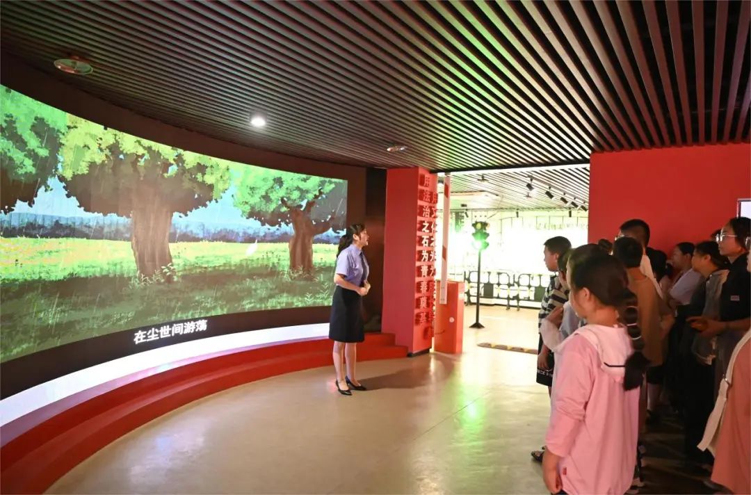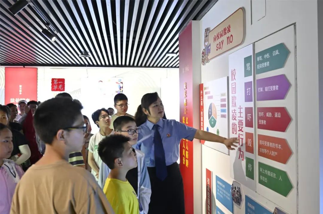 8月1日下午,受邀的50余名学生及家长代表如约走进射阳县青少年法治教育中心,跟随全国青少年普法教育先进工作者、射阳县检察院检委会专职委员孙芹的脚步步入展厅: “‘用法治之石为青春奠基、用文化之光为成长导航’是展厅的主题,请大家看我们脚下的‘法’字路和这面‘法’字墙,我来向大家讲述‘法’字的由来......”
