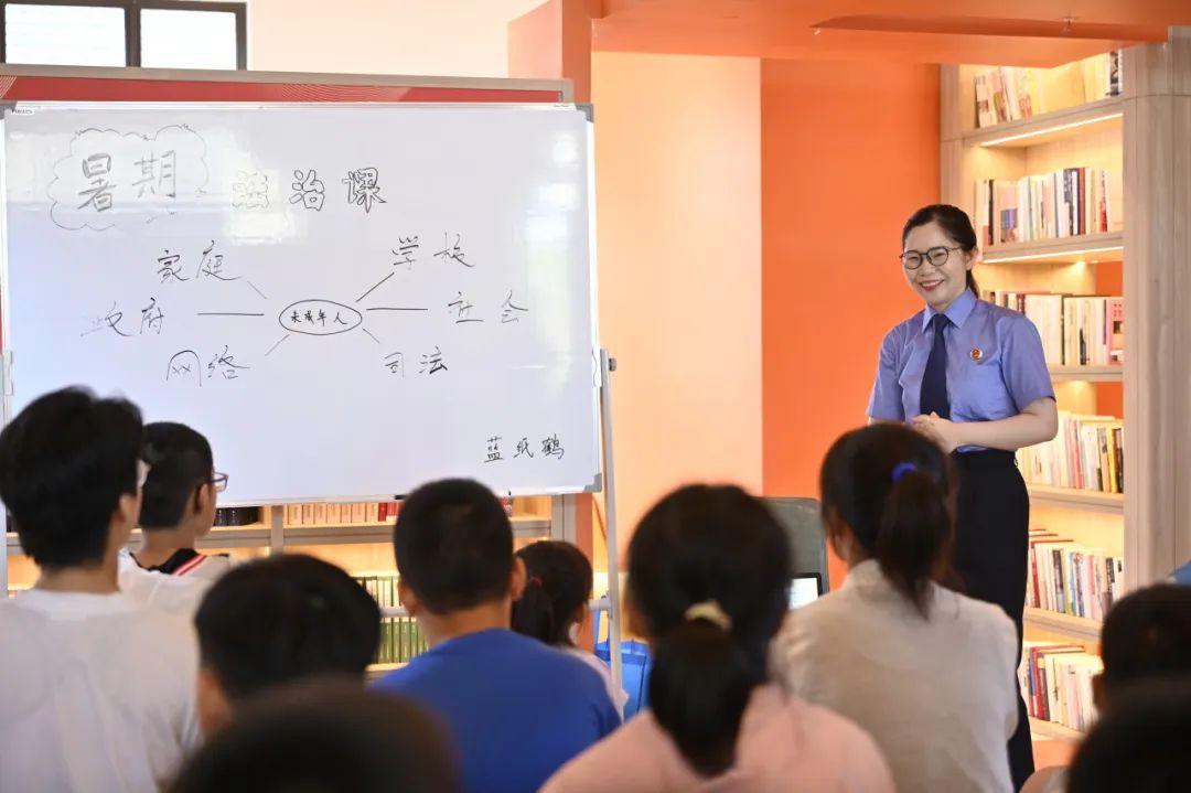 太阳花书房作为新型文化阅读空间,有着浓厚的学习氛围。宣讲员夏婷婷以读书的重要性为开端,引经据典,向同学们娓娓道来与未成年人保护相关的法律知识。