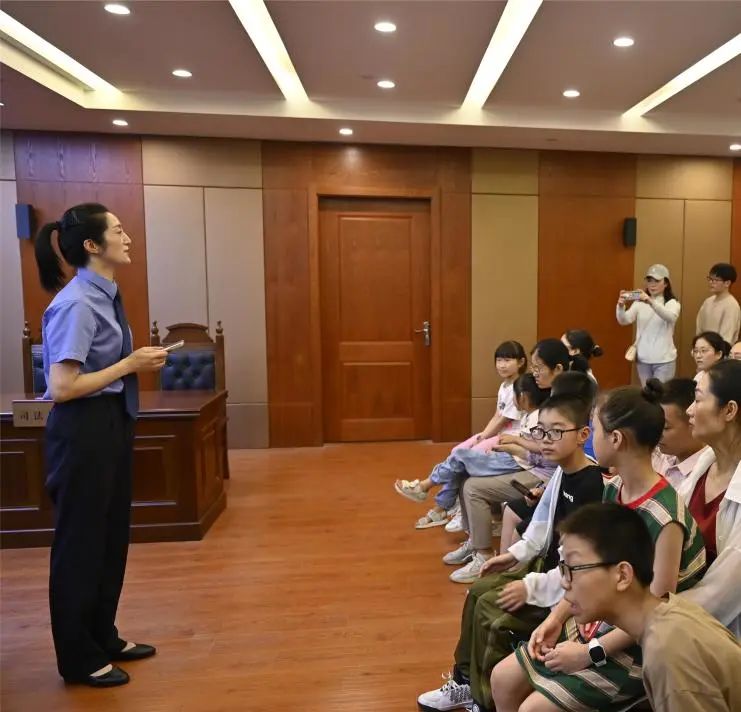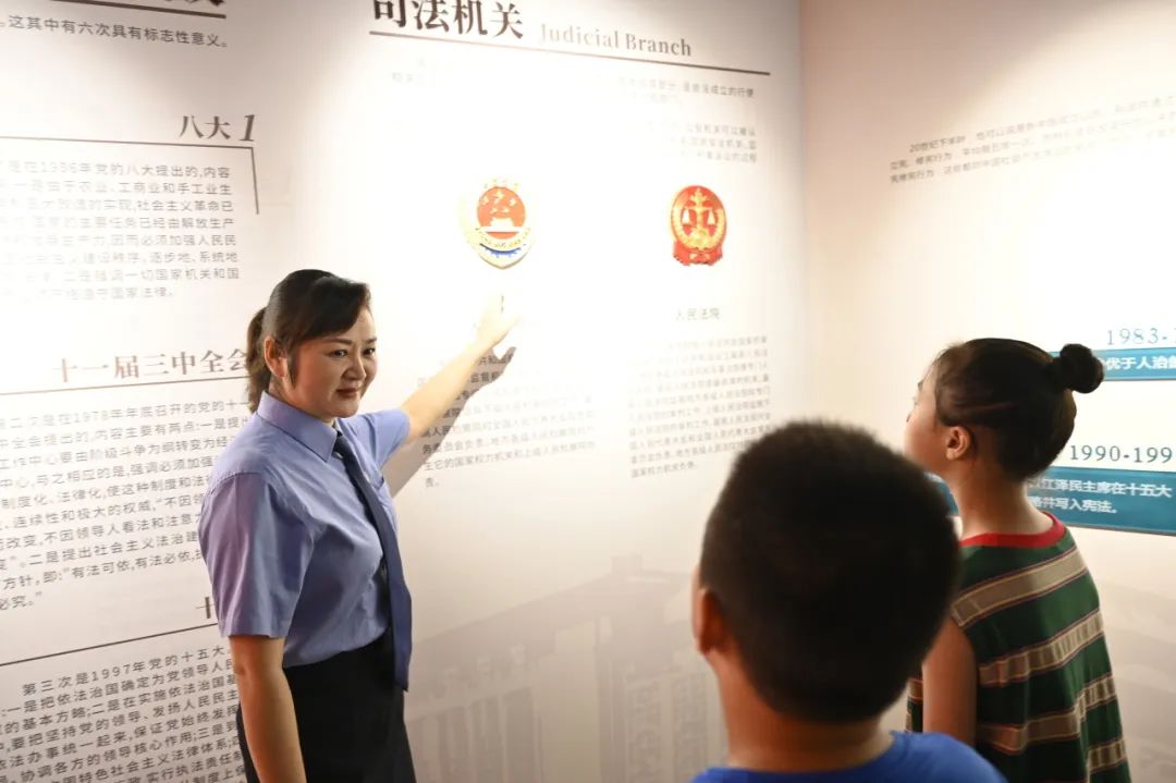 8月1日下午,受邀的50余名学生及家长代表如约走进射阳县青少年法治教育中心,跟随全国青少年普法教育先进工作者、射阳县检察院检委会专职委员孙芹的脚步步入展厅: “‘用法治之石为青春奠基、用文化之光为成长导航’是展厅的主题,请大家看我们脚下的‘法’字路和这面‘法’字墙,我来向大家讲述‘法’字的由来......”