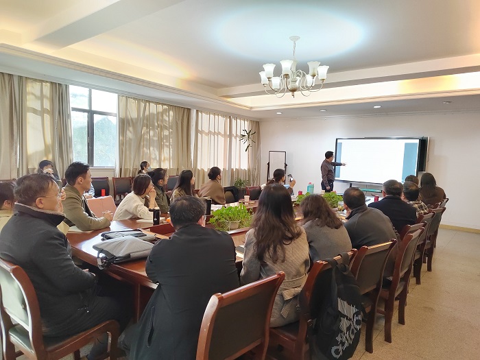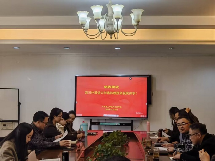 为了促进中华学术外译项目申报,推动翻译学科建设,11月20日下午,我院邀请四川外国语大学蒋林教授来学院做题为“最新中华学术外译项目申报公告解析及经验分享”学术讲座。学院有关负责人、翻译团队骨干教师、中青年博士等20多人参加了讲座。讲座由外国语学院院长张鑫主持。