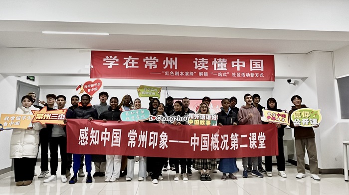 据悉,本次活动是江苏理工学院外国语学院“红色育英讲堂”思政工作品牌的生动实践和有力探索,将话剧团课搬进学生社区,从单纯的听老师讲授转变为沉浸式的体验感受,用外语讲好中国故事,让在常留学生学在常州,读懂中国,把真实的中国介绍给自己的同胞,促进相知相融相通,助力向世界展示“真实、立体、全面”的中国。