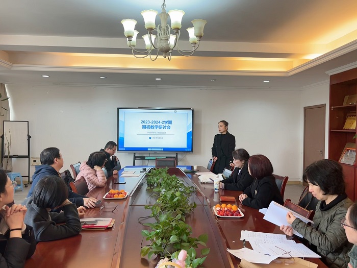 在研讨会上,郭芮结合期初教学检查意见反馈及整改、本科教育教学审核评估工作及其他工作安排进行介绍,陆赟就期初教学检查意见反馈提出自查报告、课程思政、课程大纲及成绩评定等几方面的整改意见。