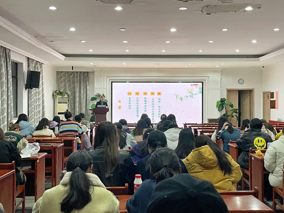 为帮助师范生熟悉教师编制招考形势政策以及考编流程,强化就业能力与信心,助力师范生成长成才,营造学院良好学习氛围,3月20日晚,外国语学院在50号楼503报告厅开展“教师编制考情分析和备考”指导讲座。本次讲座特邀南京师范大学博士、硕士生导师、教师编制招考笔试命题阅卷专家、评分细则制订专家、面试考官评委薛艳,学信教师南京校长毛伏进担任主讲,2021级全体英语师范生参加了讲座。
