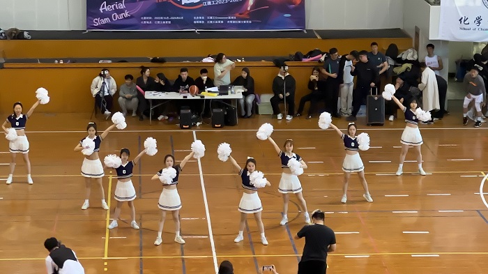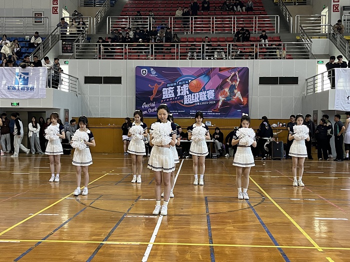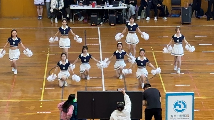 由外国语学院22英语2S 刘庭妤、22英语3S 郑好22德语2班 刘莉、22德语2班华小雨、22日语1 杨嘉慧、22英语2S 李馨蕊、22英语2S 李菁、等8名成员组成的啦啦操团队,作为开幕式表演和篮球篮球全明星对抗赛的串场节目登场,她们以激情奔放的状态、整齐而有力的动作、别具匠心的编排,完成了精彩的演绎,受到了现场嘉宾和观众的广泛赞扬,展现了外国语学院学子的青春活力与艺术素养。