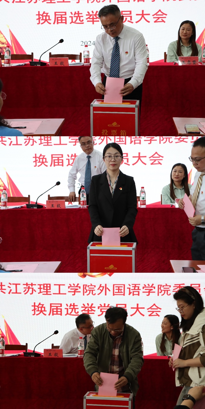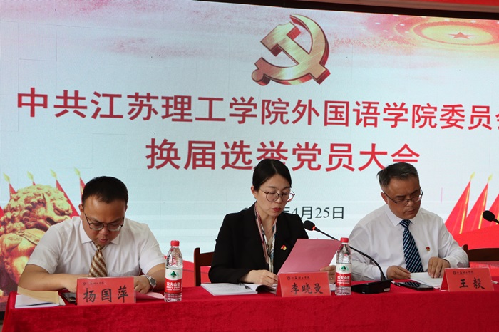 大会严格按照组织程序,宣读通过了《中共江苏理工学院外国语学院委员会换届选举党员大会选举办法(草案)》,表决通过了总监票人、监票人和计票人名单。与会党员认真履行党员职责,采用无记名投票、差额选举的方式,选举产生了外国语学院新一届党委委员。