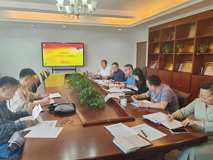5月8日中午,外国语学院在外语楼210会议室召开学院2024年国培项目实施筹备会。学院党政领导、部分授课教师、及培训班相关负责人参加会议。会议由项目负责人、副院长李世存主持。