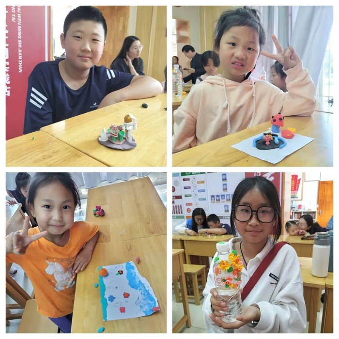 活动尾声,孩子们在志愿者的指导下,利用粘土创作充满创意的环保主题作品。孩子们将自己对环保的理解巧妙地融入手工作品中,筑造出他们心目中的美丽地球。每一棵草,每一朵花都蕴含着孩子们对绿色星球的憧憬与向往,更坚定了他们以环保意识为准则,用绿色行为去实践的决心。
