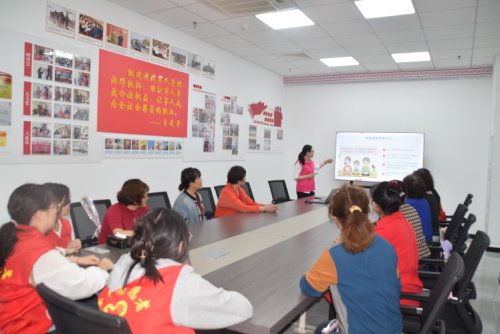 “一二三四、二二三四...”活动一开始,吴老师就带领大家进行热身活动,志愿者和妇女同胞们都带着饱满的热情参与其中。