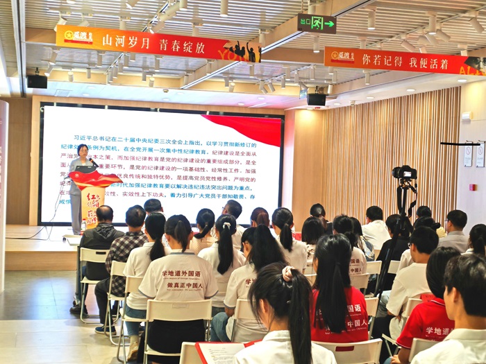 校党委常委、副校长俞亚萍讲授专题党课,这是2024届毕业生毕业前的“最后一课”,也是他们迈向社会的“第一课”。俞校长从政治纪律、组织纪律、廉洁纪律、群众纪律、工作纪律、生活纪律等六个方面,阐述了党纪学习教育的重要意义。她还结合史实和案例,重点就廉洁纪律进行全面而详细的阐述。她强调,全体毕业生党员要加强党性锻炼,自觉遵守党的纪律,确保将学习效果转化为工作动力和成效。她勉励毕业生党员坚守入党初心,常思己过,三省吾身,带着母校的嘱托,清正廉洁走好人生路,让廉洁成为青春最庄严的底色,在矢志奋斗中谱写新时代的青春篇章。