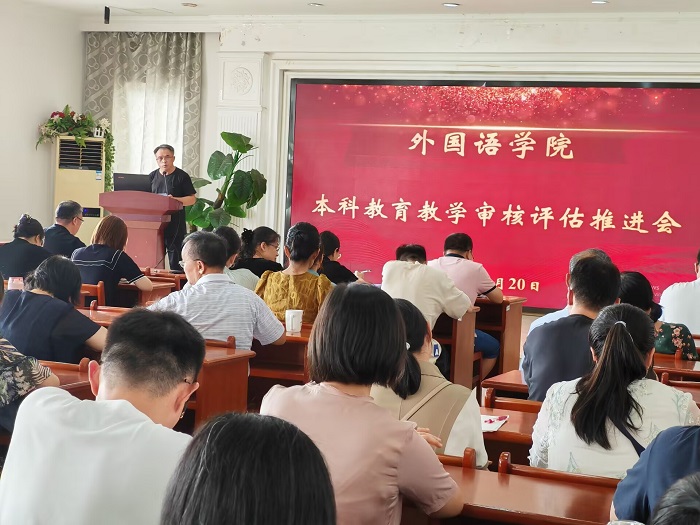 9月20日中午,外国语学院在外语楼503报告厅召开本科教育教学审核评估推进会。学院全体教师参加会议,院党委书记王毅主持会议。