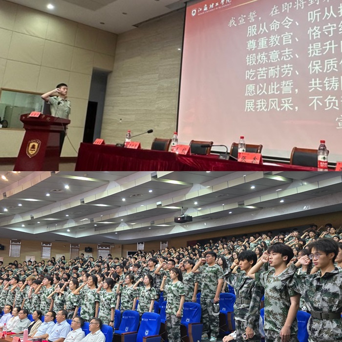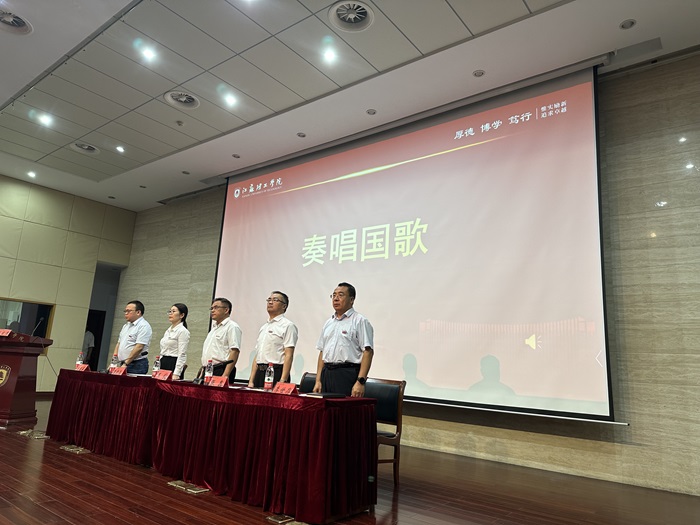 在雄壮激昂的国歌声中,江苏理工学院外国语学院2024级新生开学典礼暨军训动员会正式拉开帷幕。