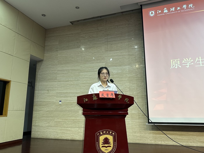 2021级德语1班卞婷婷作为在校生代表发言,她总结三年大学经历,得出“想多了都是问题,做多了才会有答案”的感悟,为新生描绘了一幅关于自我成长的工笔画。她从自我认知、坚持学习、兴趣探索三方面向新生提供了自己的思考与建议,愿与新生一起,在这段宝贵的大学生活中,不断突破自我,勇于探索,最终成长为那个更加优秀、更加自信的自己。