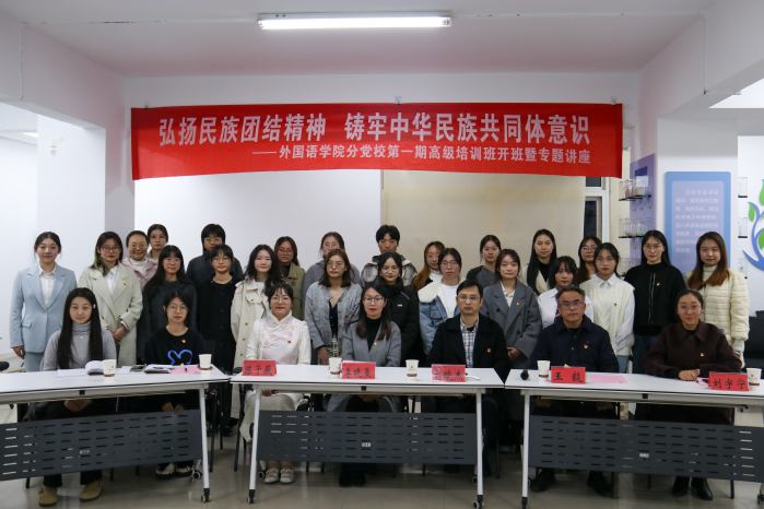 为深入贯彻习近平总书记关于铸牢中华民族共同体意识、推进新时代党的民族工作高质量发展的讲话精神,加强外国语学院学生党员和少数民族学生的民族团结教育,11月20日下午四点,外国语学院分党校第一期高级培训班暨专题讲座在1号楼笃行社区顺利开班。校党委常委、统战部部长刘晓杰、外国语学院党委书记王毅、党委副书记兼副院长李晓曼、学工办主任、学生党支部书记刘宇宁、学工办副主任、学生党支部副书记陈子薇、学生党员、少数民族学生代表出席本次会议。