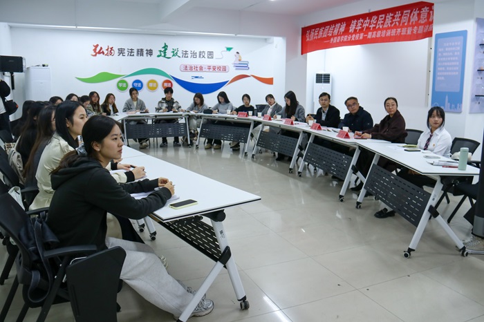 为深入贯彻习近平总书记关于铸牢中华民族共同体意识、推进新时代党的民族工作高质量发展的讲话精神,加强外国语学院学生党员和少数民族学生的民族团结教育,11月20日下午四点,外国语学院分党校第一期高级培训班暨专题讲座在1号楼笃行社区顺利开班。校党委常委、统战部部长刘晓杰、外国语学院党委书记王毅、党委副书记兼副院长李晓曼、学工办主任、学生党支部书记刘宇宁、学工办副主任、学生党支部副书记陈子薇、学生党员、少数民族学生代表出席本次会议。