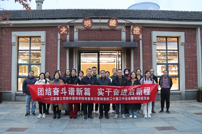 为深入学习贯彻习近平新时代中国特色社会主义思想和党的二十届三中全会精神,传承中国共产党人精神谱系,进一步提升党员干部的政治素养和理论水平,12月4日下午,外国语学院党委组织全体党员前往位于大运河畔的天虹大明1921创意园开展“团结奋斗谱新篇 实干奋进启新程”主题党日活动。外国语学院科级及以下干部、全体师生党员参加了此次活动。沉浸式感受红色运河文化,见证中国纺织的百年巨变,继承和发扬党的光荣传统和优良作风。