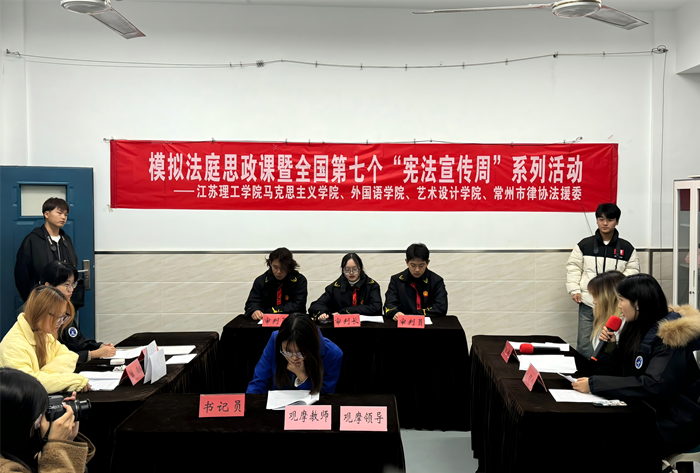 “现在开庭!”随着庄重的法槌声落下,11月28日晚,一场根据真实改编的模拟法庭思政法治课堂在江苏理工学院博识楼的教室里拉开帷幕。此次模拟法庭以一起名誉权纠纷民事案件为原型,通过精心设计的庭审流程,让同学们在模拟法庭中深入了解法律庭审的具体步骤和细节,探讨案件的法律问题,感受法律的严肃与公正。