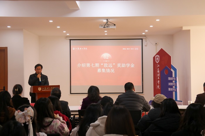 李金东宣读获得第七批“致远”奖助学金资助学生名单,并为受助学生颁发“致远”奖助学金。