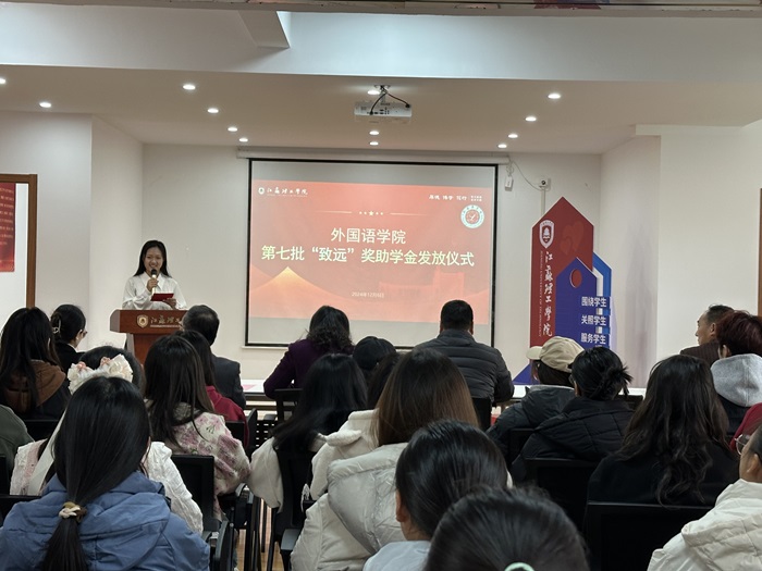 12月6日下午,外国语学院在“厚德”学生一站式社区举行“党建引领,致远启航”第七批“致远”奖助学金颁发仪式。校城融合工作办公室、校友工作办公室主任张珍,校学生工作处副处长李金东,外国语学院院长张鑫,外国语学院党委副书记兼副院长李晓曼,外国语学院校友会副秘书长周国胜,94级校友代表李启德,学院师生代表等参加了此次活动。
