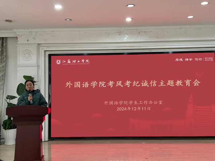 此次工作例会暨考风考纪诚信主题教育部署会的召开,切实提升了学生的诚信自律意识,为构建一个更加公平公正、积极向上的学习氛围奠定坚实而有力的基础。未来,外国语学院将以更加饱满的热情和严谨的态度投入到班级管理和学风建设中,持续优化考试环境,坚持严肃考风考纪,为学院的教育教学质量提升和优良学风建设注入强大动力。(文/肖景文;图/刘庭妤;审核/陈凌峰)