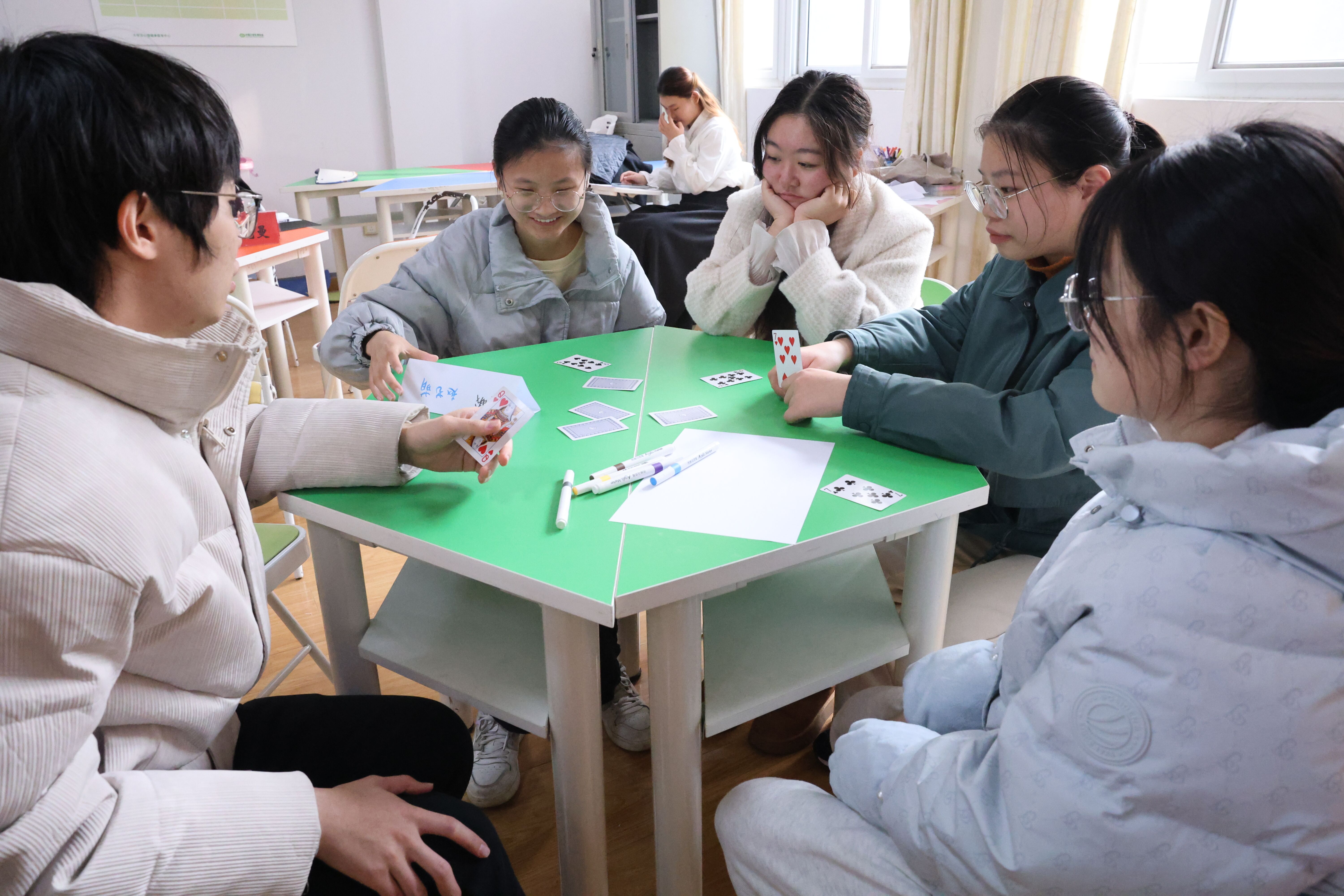 同学们与接受过生涯规划师认证的职场精英交流沟通,一起探讨未来职业发展的话题,陆秋萍以生涯规划的理念和经验,给同学们的工作生活带来切实有效的改变。活动中,她将学生分成若干个小组,带领大家完成了“人生炸金花”的互动游戏,这个游戏让同学们真实的体验到职场发展的策略,引导同学们在游戏中领悟职场竞争的智慧与合作的重要性,活动迅速引发了同学们对职场生活的初步思考和热烈讨论。接着,陆秋萍带领同学们围绕“时代正在发生哪些变化”这一主题展开了深入探讨。她通过详尽的数据分析和生动的实例,深入剖析了当下复杂多变的就业环境所面临的新挑战与新机遇,为同学们描绘了一幅既充满挑战又蕴藏无限可能的未来图景。针对学生们在职业发展和规划过程中普遍存在的困惑与迷茫,陆秋萍从不同视角出发,结合个人经验与社会发展的趋势,提出了一系列切实可行的破局之策,鼓励同学们要敢于面对挑战,灵活调整策略,积极拥抱变化。