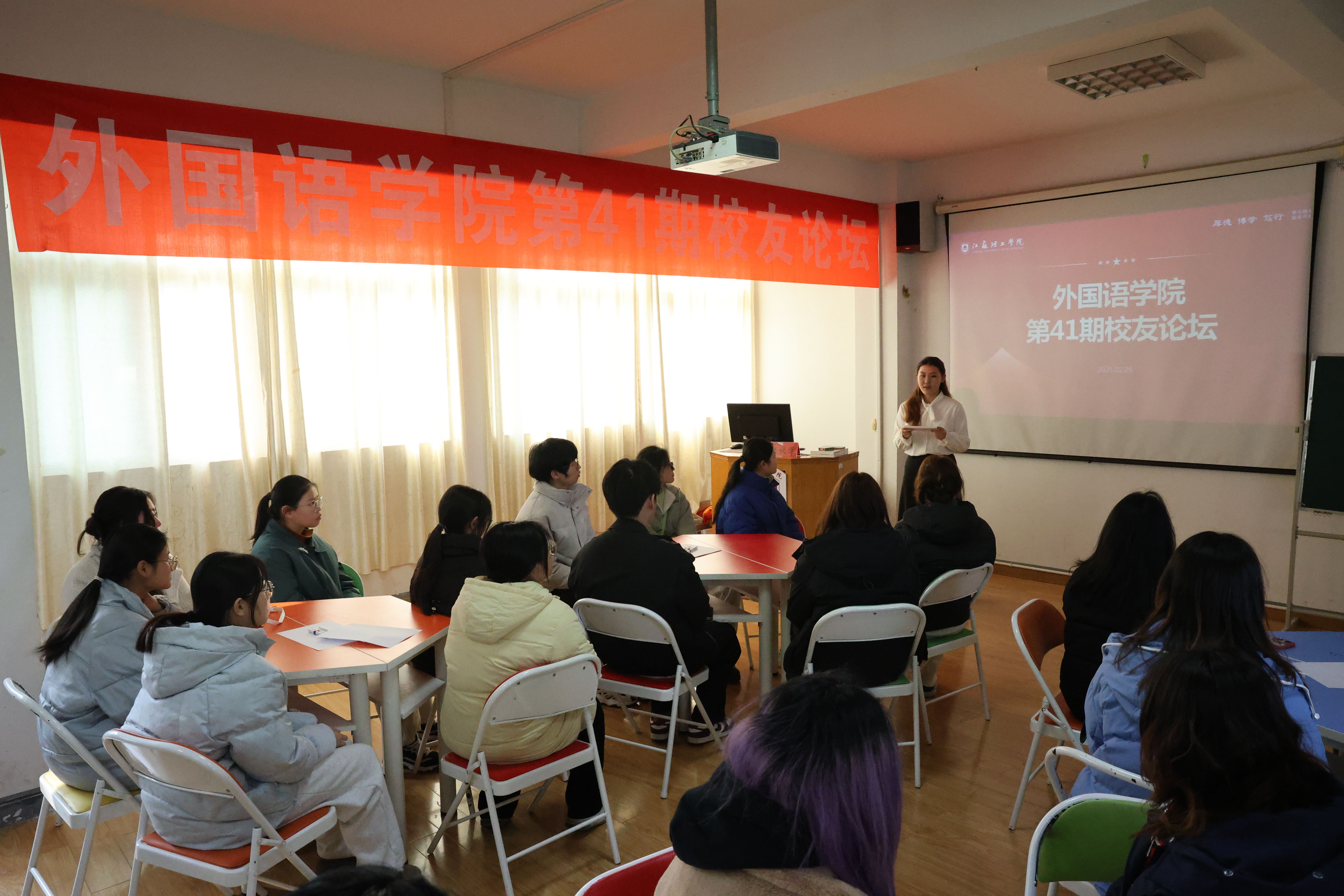 2月26日下午,外国语学院在“厚德”一站式社区成功举办第四十一期校友论坛。本次论坛特邀CDC青少年生涯规划中心首席生涯导师、外院02级校友陆秋萍为在校学生分享职场成长经验。外国语学院党委副书记兼副院长李晓曼、辅导员肖景文以及各年级30余名学生参加了活动。论坛以“如何锚定自己的职业定位和优势”为主题,通过经验分享、案例剖析与互动交流等形式,为学生们提供了极具价值的职业探索。