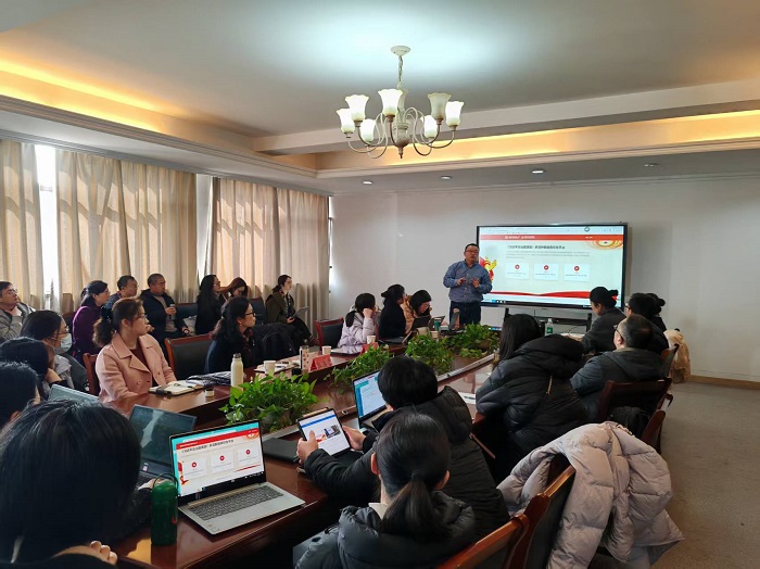 为进一步推进外语教学与科研的智能化水平,提升教师的数字素养与数字胜任力,2月26日,外国语学院在外语楼210会议室举办智能化多语种数据库教学科研平台应用培训会。外国语学院张鑫院长、副院长李世存以及四系一部骨干教师50余人参加培训。上海外语教育出版社江苏教育发展中心副主任郭海霞应邀出席培训会。上海外国语大学语言科学研究院助理研究员李晓倩博士、南京师范大学泰州学院外国语学院副院长殷铭博士担任主讲专家。