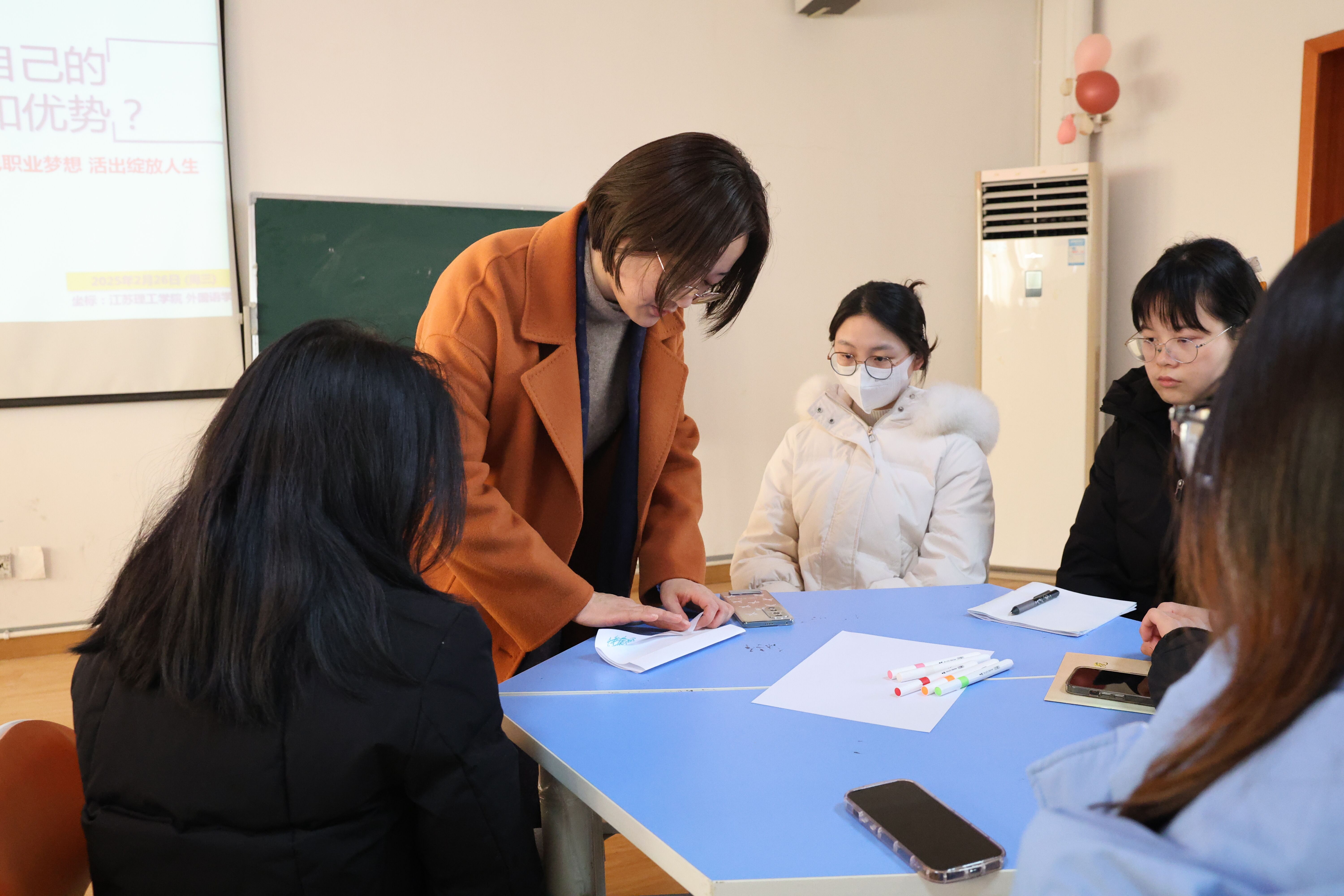 同学们与接受过生涯规划师认证的职场精英交流沟通,一起探讨未来职业发展的话题陆秋萍以生涯规划的理念和经验,给同学们的工作生活带来切实有效的改变活动中,她将学生分成若干个小组,带领大家完成了“人生炸金花”的互动游戏,这个游戏让同学们真实的体验到职场发展的策略,引导同学们在游戏中领悟职场竞争的智慧与合作的重要性,活动迅速引发了同学们对职场生活的初步思考和热烈讨论。接着,陆秋萍带领同学们围绕“时代正在发生哪些变化”这一主题展开了深入探讨。她通过详尽的数据分析和生动的实例,深入剖析了当下复杂多变的就业环境所面临的新挑战与新机遇,为同学们描绘了一幅既充满挑战又蕴藏无限可能的未来图景。针对学生们在职业发展和规划过程中普遍存在的困惑与迷茫,陆秋萍从不同视角出发,结合个人经验与社会发展的趋势,提出了一系列切实可行的破局之策,鼓励同学们要敢于面对挑战,灵活调整策略,积极拥抱变化。