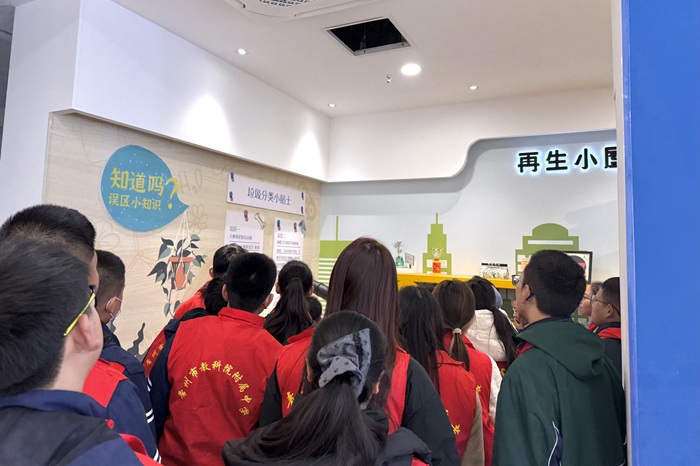 在宣教中心丁主任的带领下,同学们们通过图文展板、互动模型和多媒体演示系统学习了垃圾分类的科学知识。丁主任结合钟楼社区此前开展的专题讲座经验,重点讲解了分类标准、常见误区及资源化利用意义,“垃圾分类可减少污染、优化资源利用”等观点,强调青少年在环保行动中的关键作用。学生们还通过现场道具模拟分类场景,沉浸式体验垃圾处理流程。
