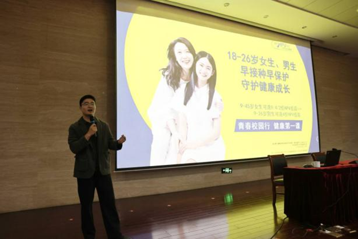 随后,志愿者程佩东普及了HPV病毒的危害及预防措施。首先他讲解了HPV的两种类型及其传播方式,建议在日常生活中一定要养成良好作息习惯,增强自身抵抗力。而在HPV病毒的预防措施方面,他分析了接种HPV疫苗的重要性,并提醒同学们“HPV 疫苗接种得越早,保护效果就越好,不要错过最佳接种时机。”