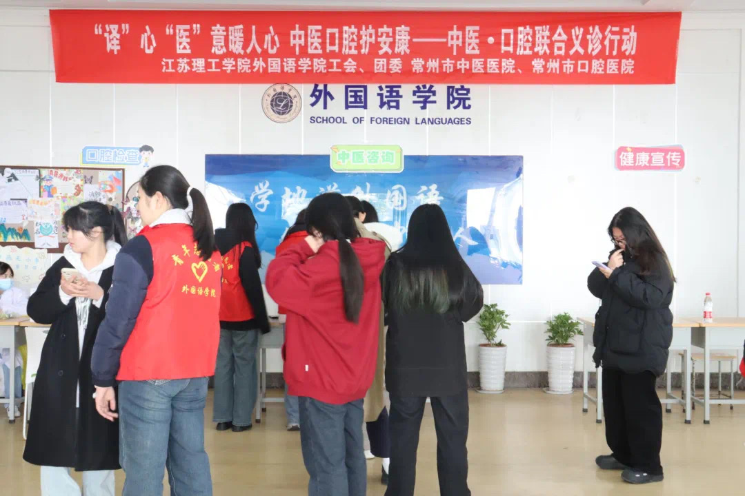 3月20日下午,外国语学院工会、团委联合常州中医院、常州口腔医院,在外国语学院大厅举办“译”心“医”意暖人心 中医口腔护安康主题义诊活动,为全院师生提供中医咨询、健康咨询等“一站式”健康服务,传递节日关怀。