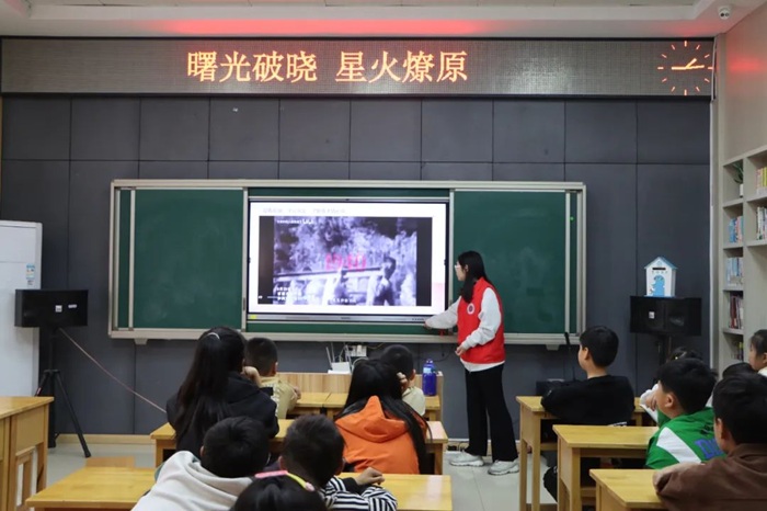 活动伊始,志愿者用生动的讲述,带领同学们回溯中国共产党的光辉历程,加深了青少年对党的认同感与归属感。一段段珍贵的历史影像资料,将革命征程中的关键转折点生动展现,让同学们对党的发展有了更直观、深刻地理解。