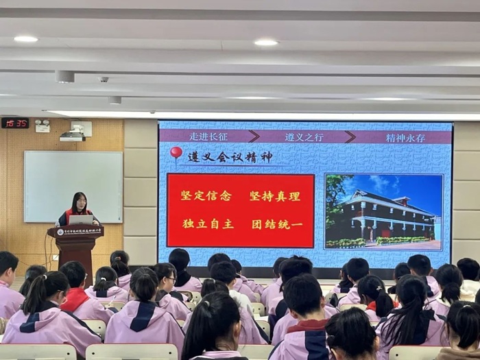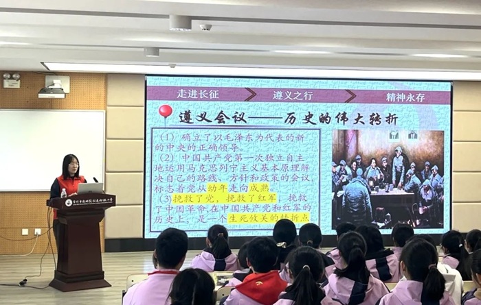 4月2日,外国语学院红色育英宣讲团走进常州市教科院附属中学,开展“重走遵义路,薪传革命情”主题团课活动。此次活动旨在深入践行习近平总书记关于赓续红色血脉的重要指示,让红色基因在新时代青少年心中生根发芽。