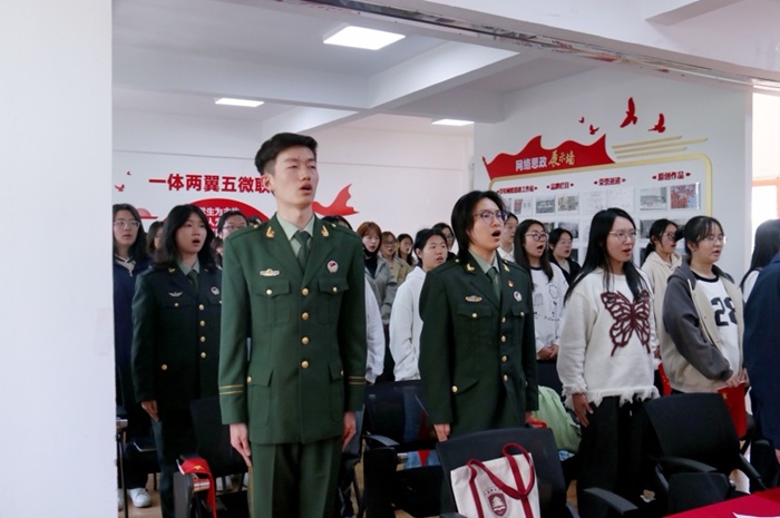 学院退伍复学学生代表颜炼、周梓钰以军营纪实为主题,讲述了从校园到军营、从青涩到坚毅的蜕变历程,诠释了“迷彩青春”的深刻内涵。他们分享军旅生涯中锤炼意志、报效国家的点点滴滴,每一个故事都饱含着对祖国的忠诚与热爱,引发在场师生的共鸣。