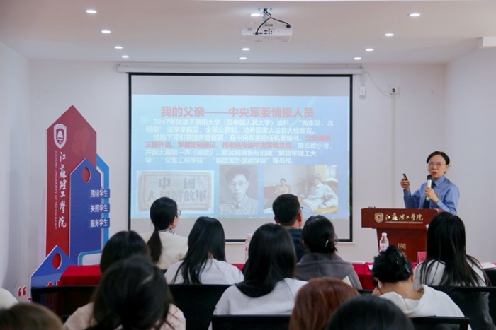 交汇点讯“新时代的大学生不仅是国家发展的受益者,更是国家安全的守护者,在维护国家安全方面应该有所作为……”在江苏理工学院厚德一站式学生社区网络思政中心,常州市委政法委关工委秘书长、市检察院“纪萍工作室”负责人纪萍作主题宣讲的场景。近日,在第十个“全民国家安全教育日”,江苏理工学院外国语学院开展“国安护新程 戎装启未来——4·15全民国家安全教育日”主题教育,通过故事分享、专题讲座等形式,激发青年学子爱国热情,筑牢国家安全防线。